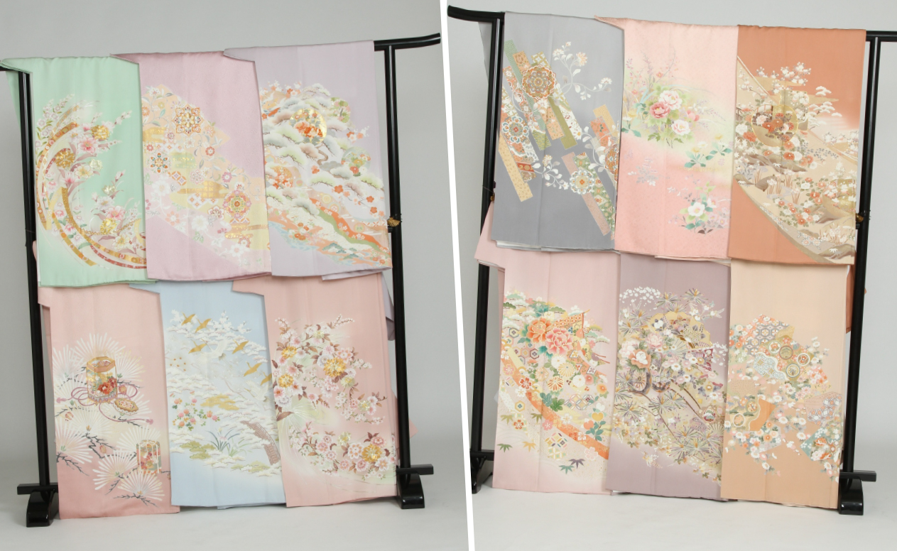 様々な色留袖の品揃えからお選び頂けます。(¥88,000税込~ 小物類 草履・バッグ付 静岡の場合です)